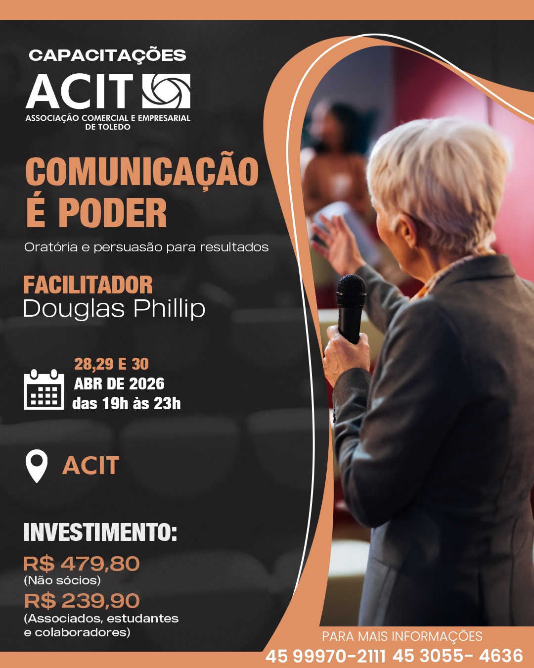 Com uma metodologia prática e dinâmica, o participante desenvolve presença, autoridade comunicacional e capacidade de influenciar pessoas e decisões, tornando-se um comunicador mais seguro, estratégico e impactante